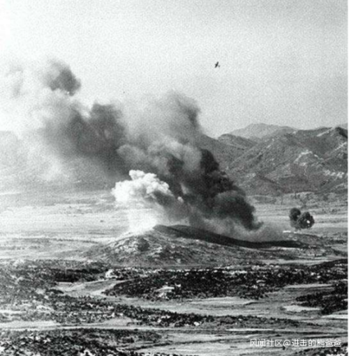 第二天早六点,天刚蒙蒙亮,几个批次的总数十余架美机就从不同高度和不同方向飞来。其中不仅仅有昨天出现的F80战斗机,还有挂着炸弹的F84、P51等战斗轰炸机。飞机一到9连阵地,立刻开始倾泻炸弹燃烧弹,整个山头立刻火光冲天。